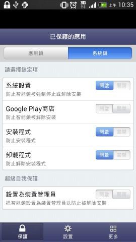 系統(tǒng)里可以選擇講智能鎖設(shè)定成拒絕移除的程式,也可以將智能鎖設(shè)置成為裝置管理員,讓智能鎖有更高的權(quán)限,也可以避免被有心人移除。