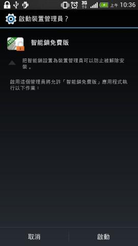市面上有不少可以鎖住或隱藏重要資料與照片的APP軟件,這些軟件不但好用,而且功能也非常強(qiáng)大大。不過常使用的人一定知知道這些軟件的致命缺點(diǎn),就是只要軟件一移除,就什么防護(hù)效果都沒了。所以今天小弟要推擠=一款可以將隱私軟件設(shè)為管理者權(quán)限,避免因移除了失去防護(hù)功能的免費(fèi)APP軟件-「智能鎖」。強(qiáng)化了管理者權(quán)限的隱私鎖,相信一定更能讓你用的安心喔。